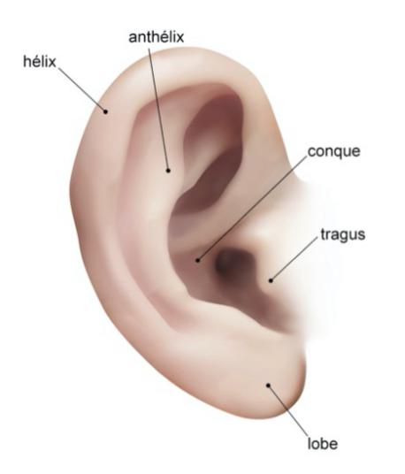 • Tamaño del cartílago excesivo de la concha (ver esquema) que se proyecta hacia delante del oído, lo que acentúa el aspecto off (ampliada concha).